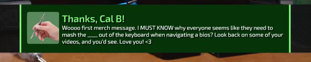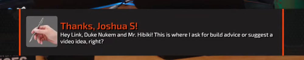 Built so many PCs all because of you guys. Love all your merch. Thanks. | Timestamp |  |