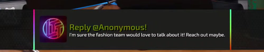 I'm sure the fashion team would love to talk about it! Reach out maybe. | Timestamp |  |