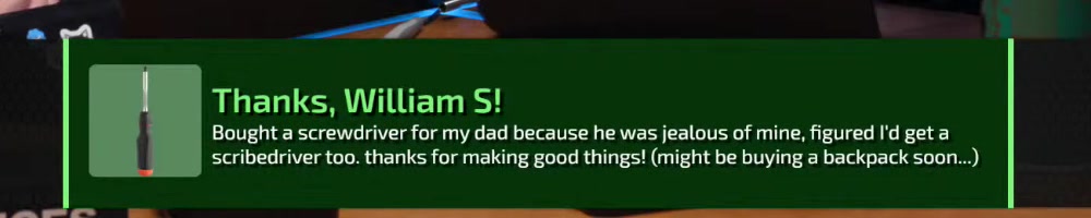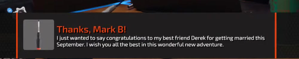 | Dustin C | message | Thanks, Dustin C!