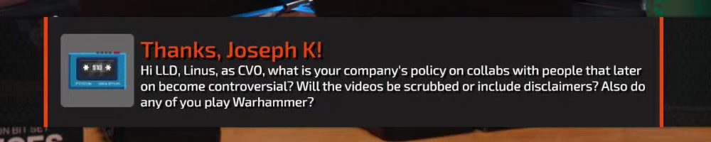recommendation Linus. I have one question though for Linus. WHY?! | Timestamp |  |