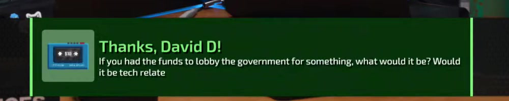 | Spencer V | message | Thanks, Spencer V!