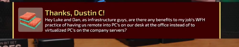 Hey Luke and Dan, as infrastructure guys, are there any benefits to my job's WFH