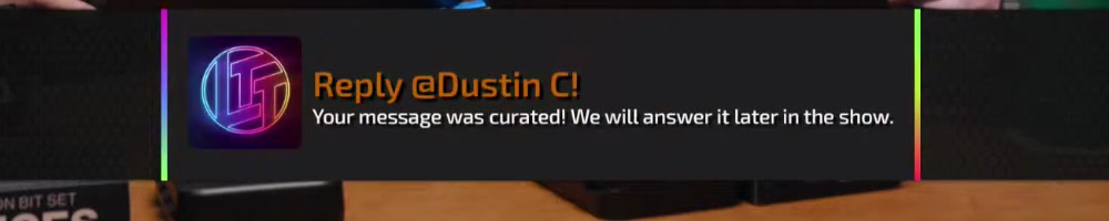 Your message was curated! We will answer it later in the show. | Timestamp |  |