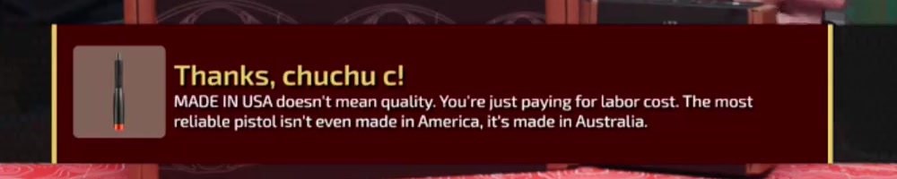 reliable pistol isn't even made in America, it's made in Australia. | Timestamp |  |