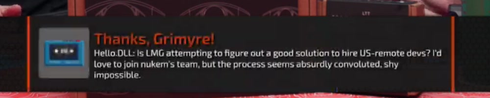 Hello.DLL: Is LMG attempting to figure out a good solution to hire US-remote devs? I'd