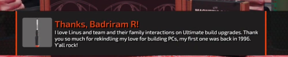I love Linus and team and their family interactions on Ultimate build upgrades. Thank