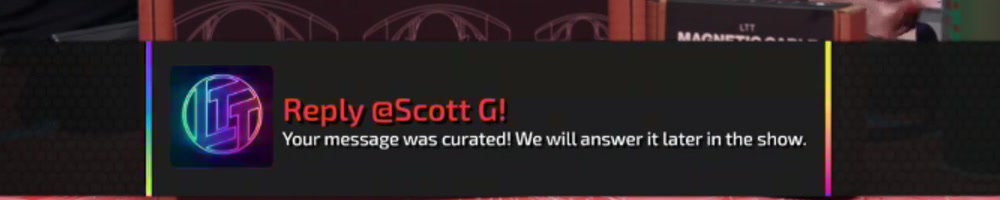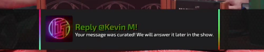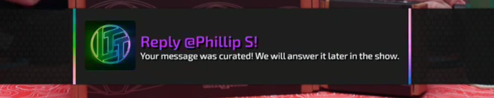 Your message was curated! We will answer it later in the show. | Timestamp |  |