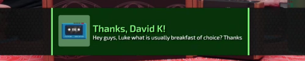 Hey guys, Luke what is usually breakfast of choice? Thanks | Timestamp |  |