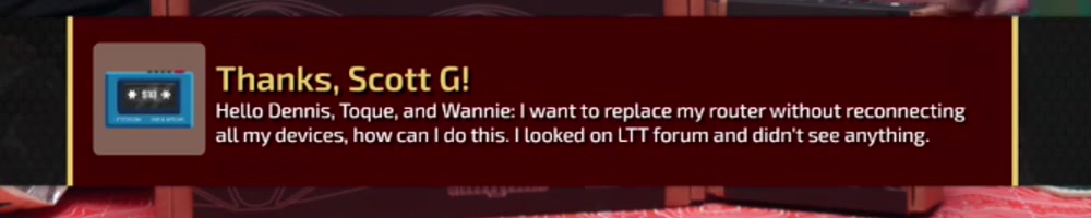 Hello Dennis, Toque, and Wannie: I want to replace my router without reconnecting