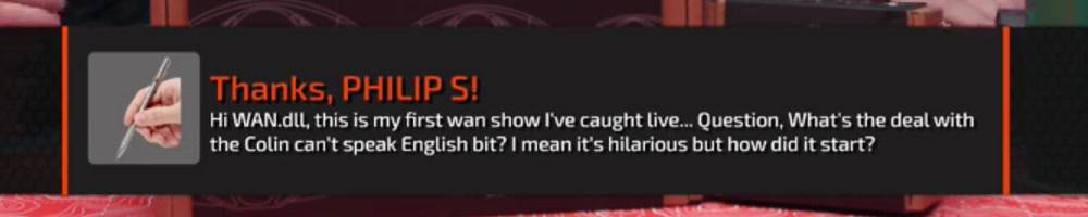 the Colin can't speak English bit? I mean it's hilarious but how did it start? | Timestamp |  |