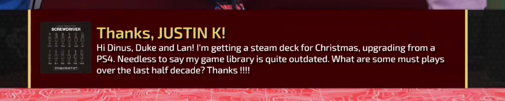 Hi Dinus, Duke and Lan! I'm getting a steam deck for Christmas, upgrading from a