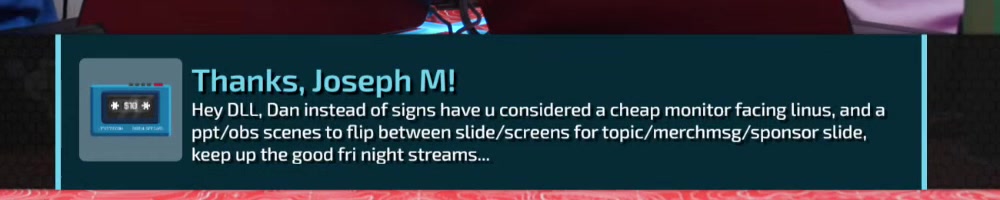 Hey DLL, Dan instead of signs have u considered a cheap monitor facing linus, and a