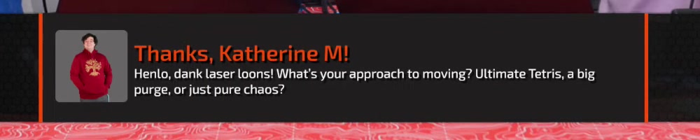 Henlo, dank laser loons! What's your approach to moving? Ultimate Tetris, a big