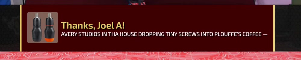 AVERY STUDIOS IN THA HOUSE DROPPING TINY SCREWS INTO PLOUFFE'S COFFEE - | Timestamp |  |