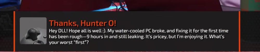 Hey DLL! Hope all is well :). My water-cooled PC broke, and fixing it for the first time
