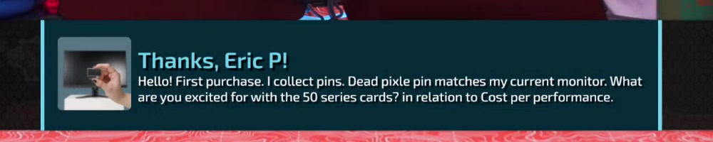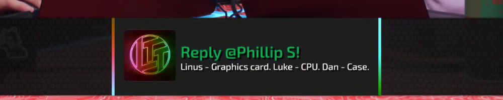 Linus - Graphics card. Luke - CPU. Dan - Case. | Timestamp |  |