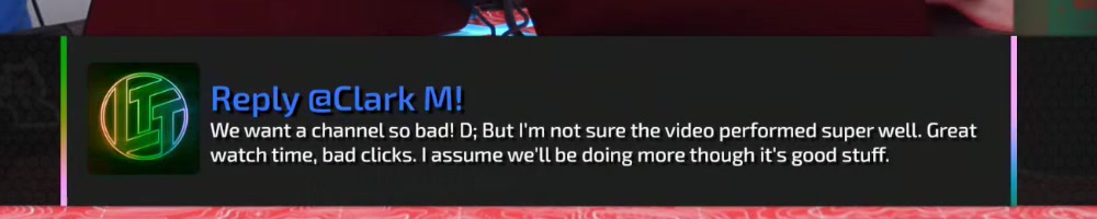 We want a channel so bad! D; But I'm not sure the video performed super well. Great