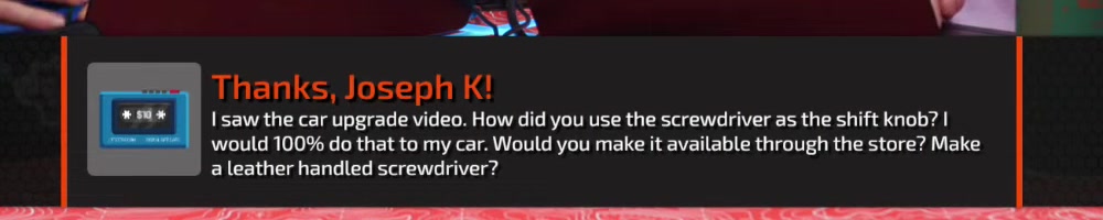 a chance for future car modding videos? Maybe a new channel | Timestamp |  |