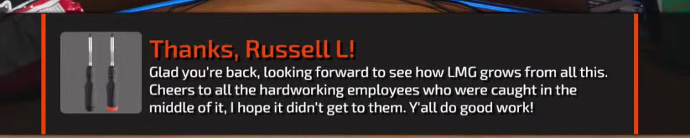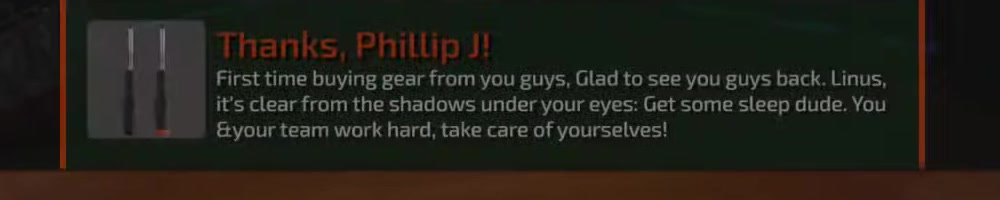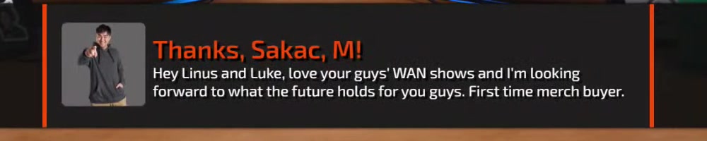 First time buying gear from you guys, Glad to see you guys back. Linus,