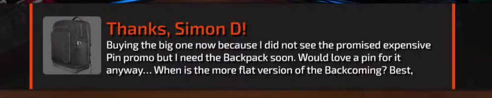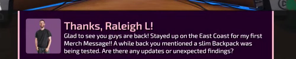 Merch Message!! A while back you mentioned a slim Backpack was