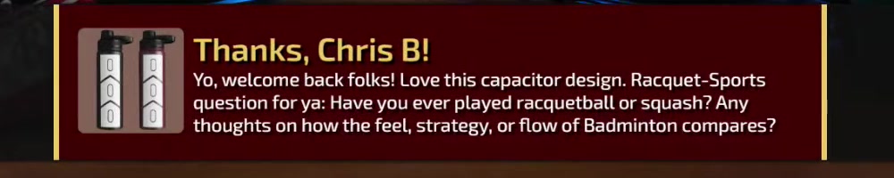 Yo, welcome back folks! Love this capacitor design. Racquet-Sports