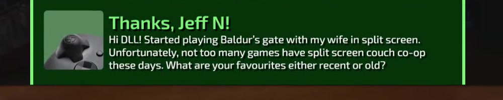 Hi DLL! Started playing Baldur's gate with my wife in split screen.