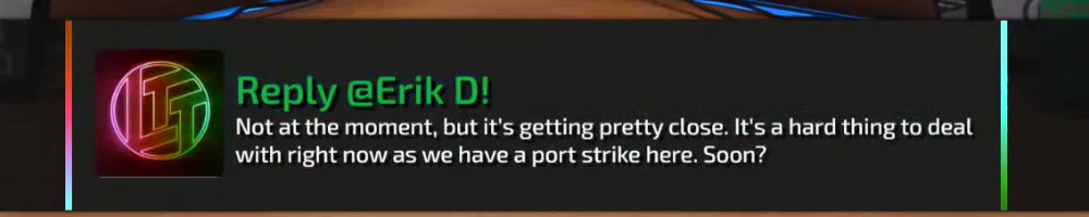 with right now as we have a port strike here. Soon? | Timestamp |  |