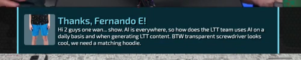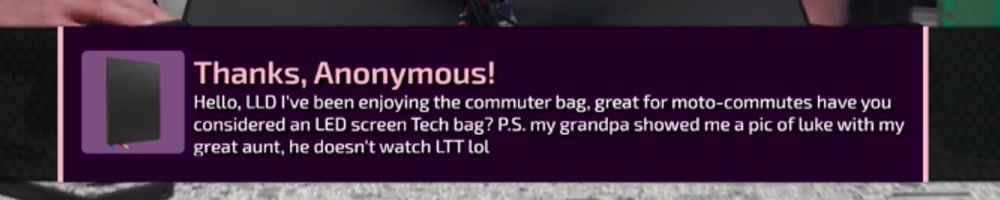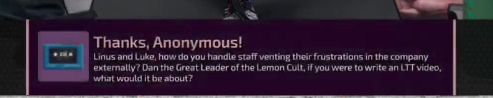 externally? Dan the Great Leader of the Lemon Cult, if you were to write an LTT video,
