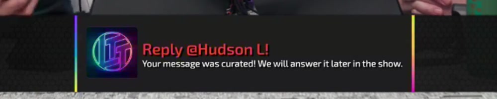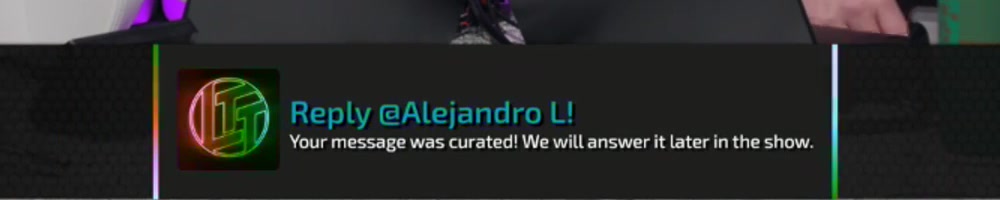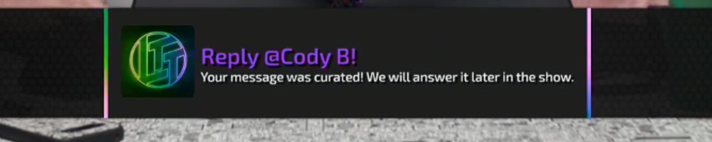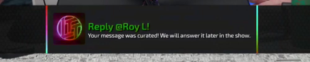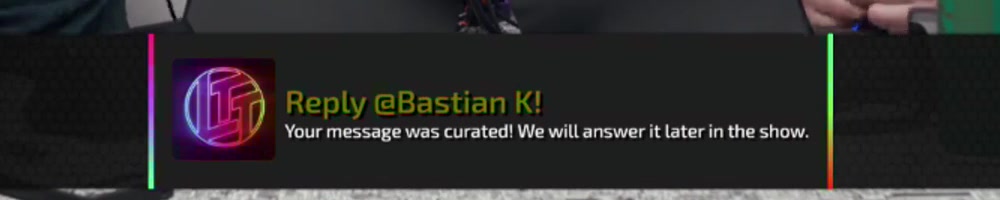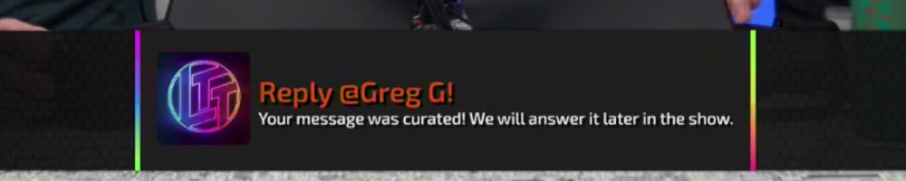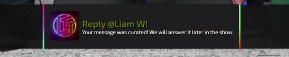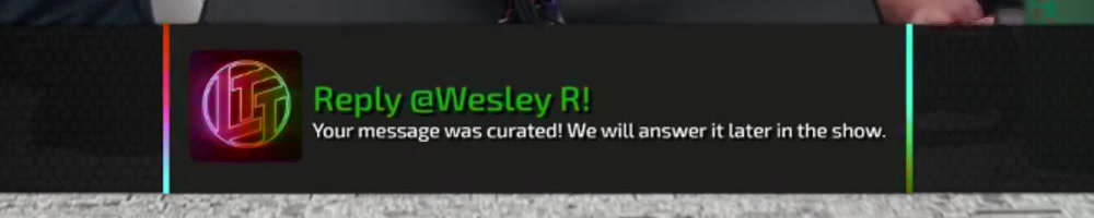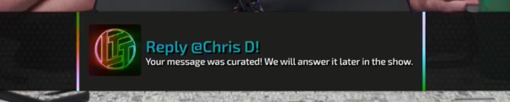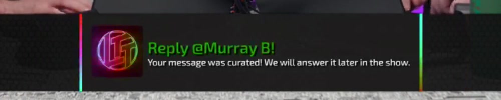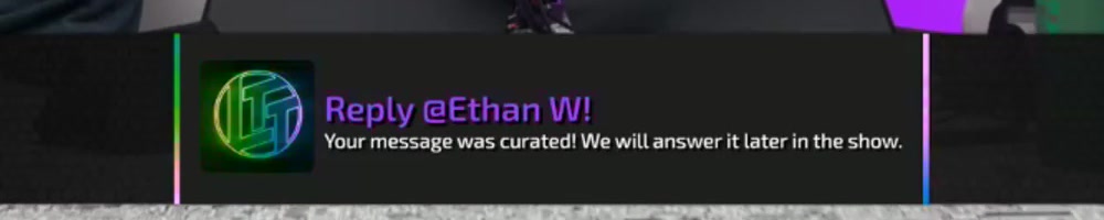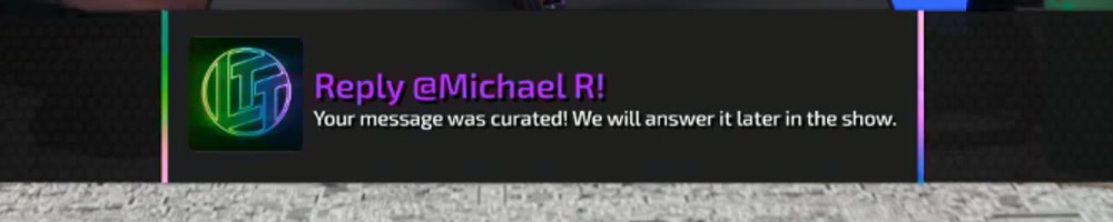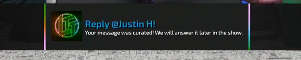 Your message was curated! We will answer it later in the show. | Timestamp |  |