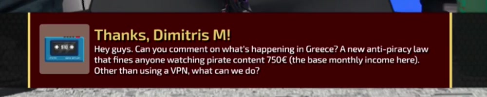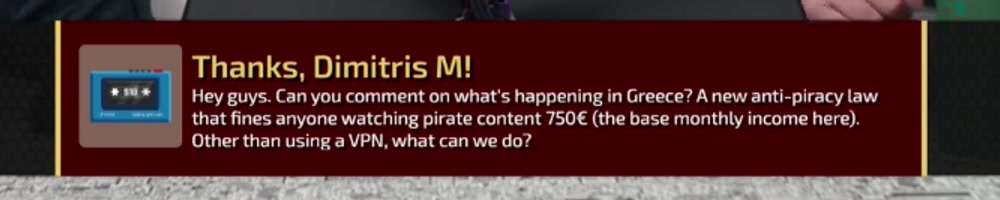 Hey guys. Can you comment on what's happening in Greece? A new anti-piracy law