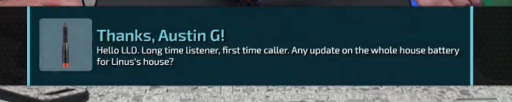 Hello LLD. Long time listener, first time caller. Any update on the whole house battery