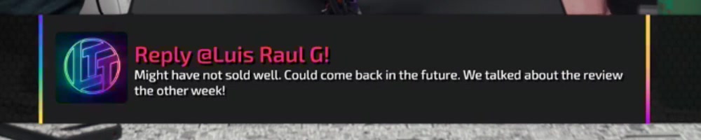 Might have not sold well. Could come back in the future. We talked about the review