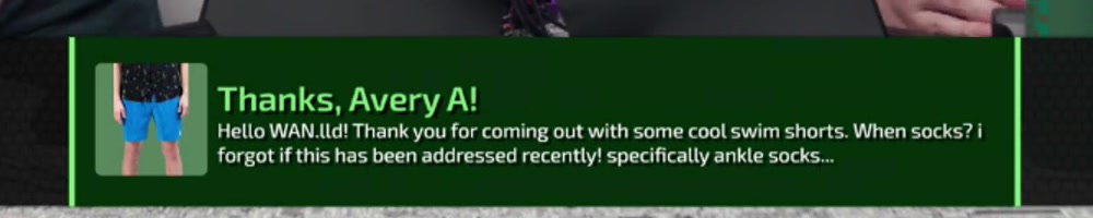Hello WAN.lld! Thank you for coming out with some cool swim shorts. When socks? i