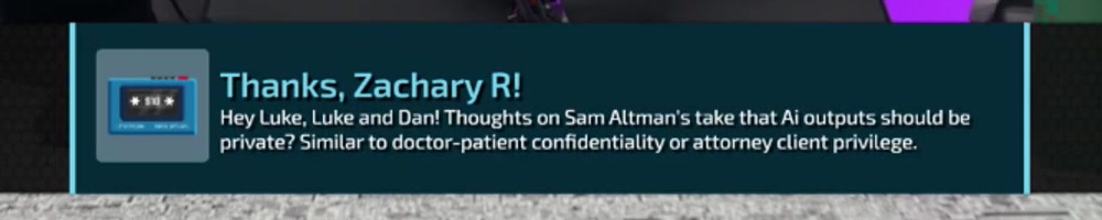 Hey Luke, Luke and Dan! Thoughts on Sam Altman's take that Ai outputs should be