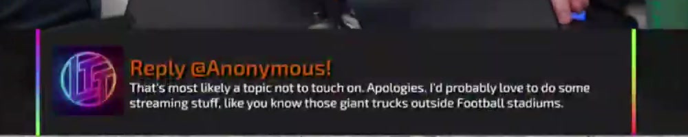 streaming stuff, like you know those giant trucks outside Football stadiums. | Timestamp |  |