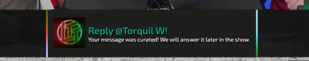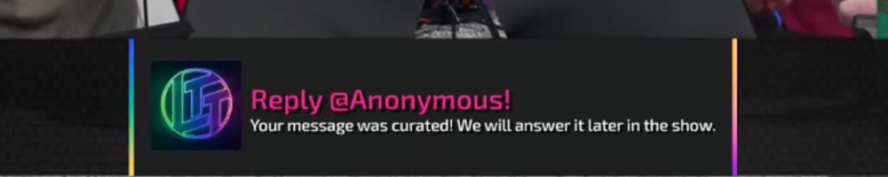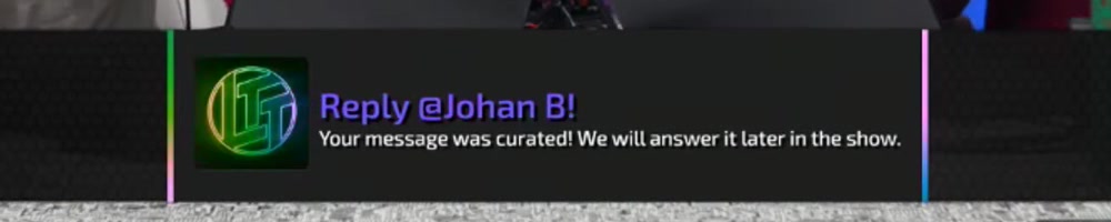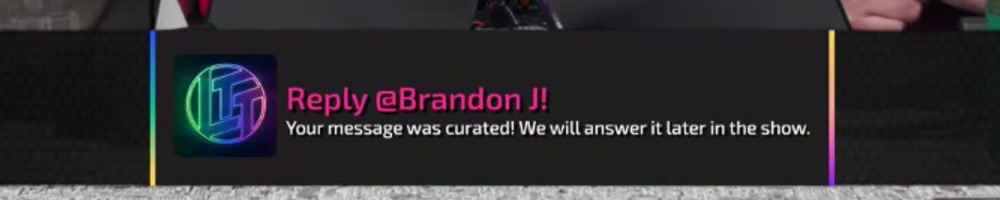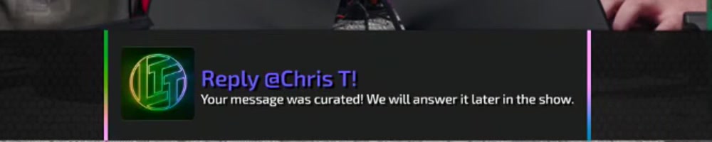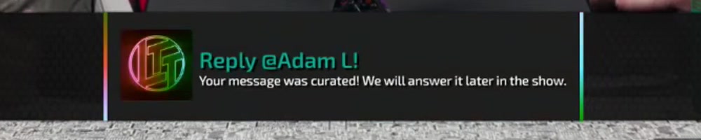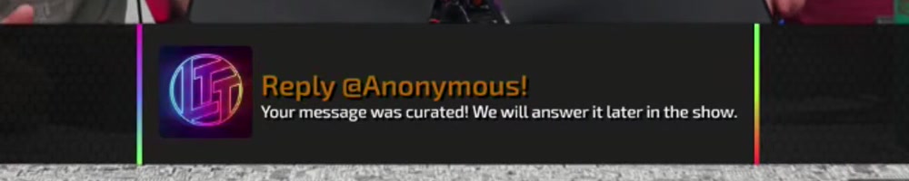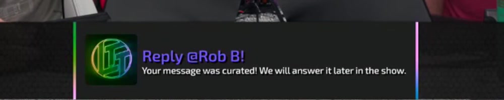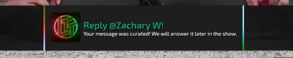 Your message was curated! We will answer it later in the show. | Timestamp |  |