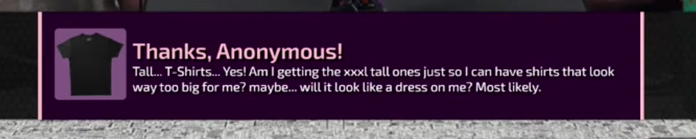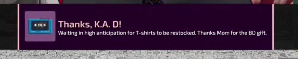 Waiting in high anticipation for T-shirts to be restocked. Thanks Mom for the BD gift. | Timestamp |  |