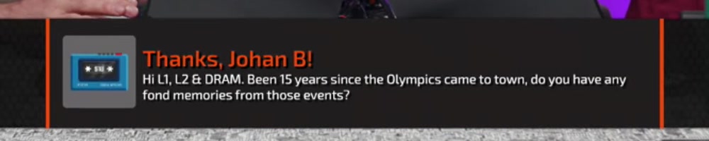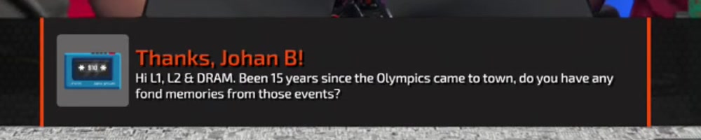 Hi L1, L2 & DRAM. Been 15 years since the Olympics came to town, do you have any