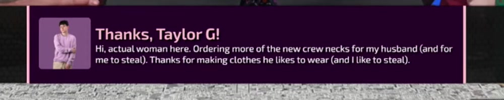 me to steal). Thanks for making clothes he likes to wear (and I like to steal). | Timestamp |  |