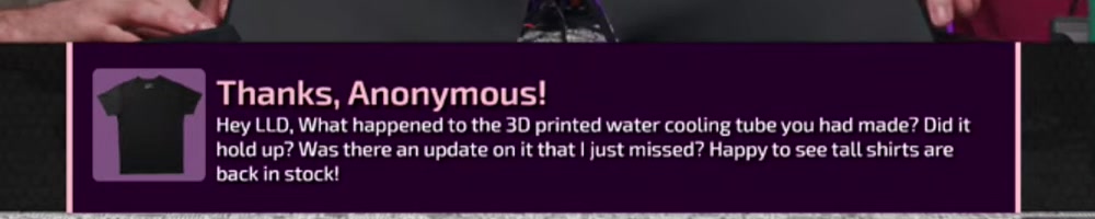 Hey LLD, What happened to the 3D printed water cooling tube you had made? Did it