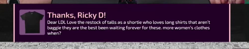 Dear LDL Love the restock of talls as a shortie who loves long shirts that aren't