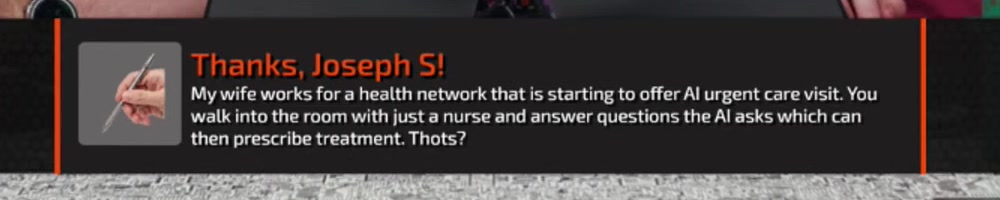My wife works for a health network that is starting to offer Al urgent care visit. You