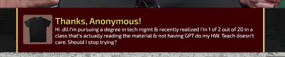 class that's actually reading the material & not having GPT do my HW. Teach doesn't