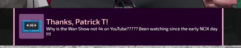 Why is the Wan Show not 4k on YouTube????? Been watching since the early NCIX day