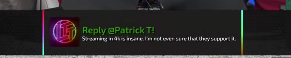 Streaming in 4k is insane. I'm not even sure that they support it. | Timestamp |  |
