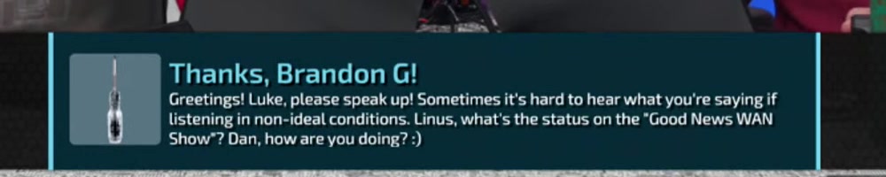 listening in non-ideal conditions. Linus, what's the status on the "Good News WAN