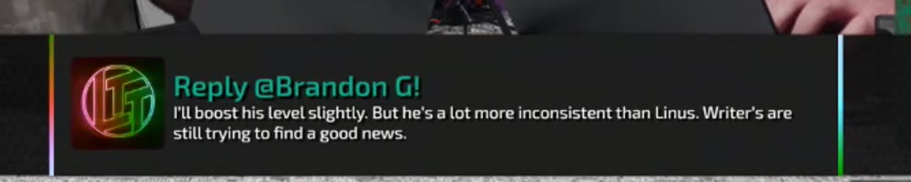 I'll boost his level slightly. But he's a lot more inconsistent than Linus. Writer's are