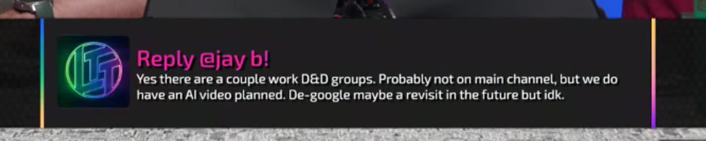 Hi LAN.DLL! Luke and Linus have talked multiple times about why you don't want to