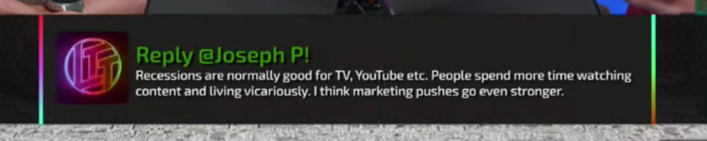 Recessions are normally good for TV, YouTube etc. People spend more time watching