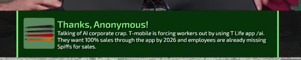 Talking of Al corporate crap. T-mobile is forcing workers out by using T Life app/ai.
